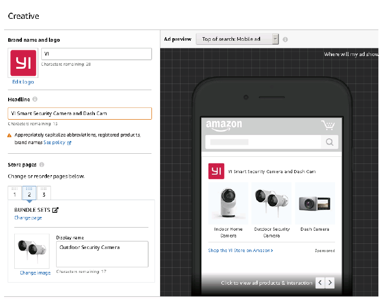*开始/结束日期、3个展示的ASIN,落地页面必须相同