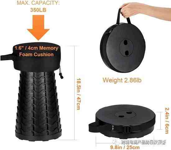 这款折叠凳的专利权是中国的一家企业的,同是,我还看到目前有多家商家正在售卖同款产品,要有防侵权意识了......