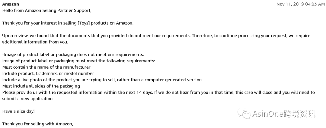 几日前,一个小玩具种类的商品后台管理inactive了, 问亚马逊客服,别人回应说要根据审批,提交审核材料的网页页面以下: