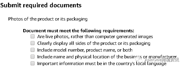 假如你选择自己是“生产商”或是“both", 那么你要是出示商品包装图片就可以了。