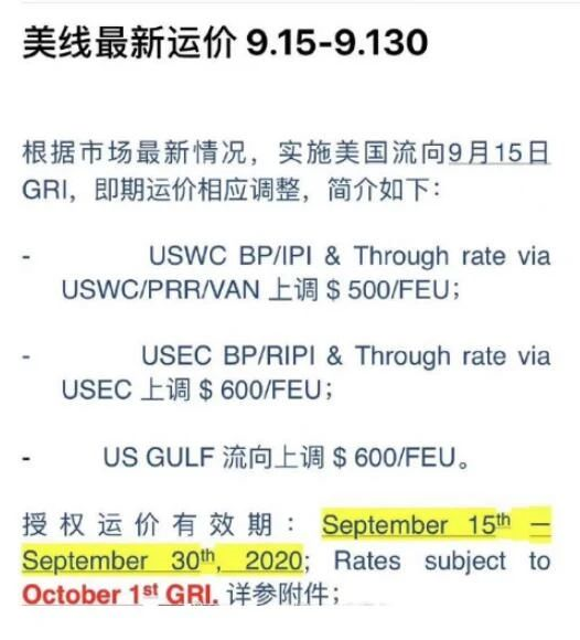 早在上周,就陆续传出物流价格上涨的消息,在朋友圈,也流传着这样关于一张美线最新运价的截图。
