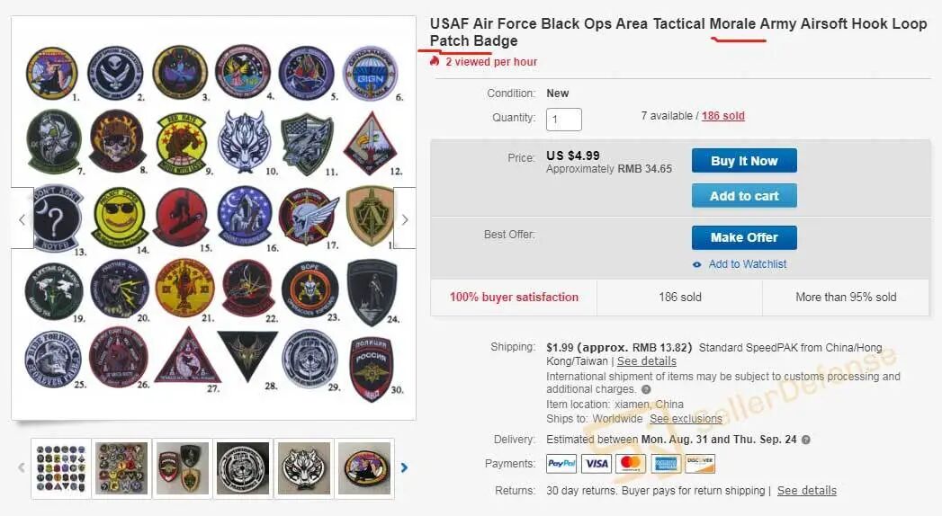 此次被告名单有281个,主要是“Morale Patch”文字侵权,臂章、布贴等相关商品都不能使用该词组,即使是词组分开,只要在一个标题里,也会有涉及侵权的风险。