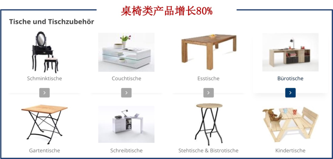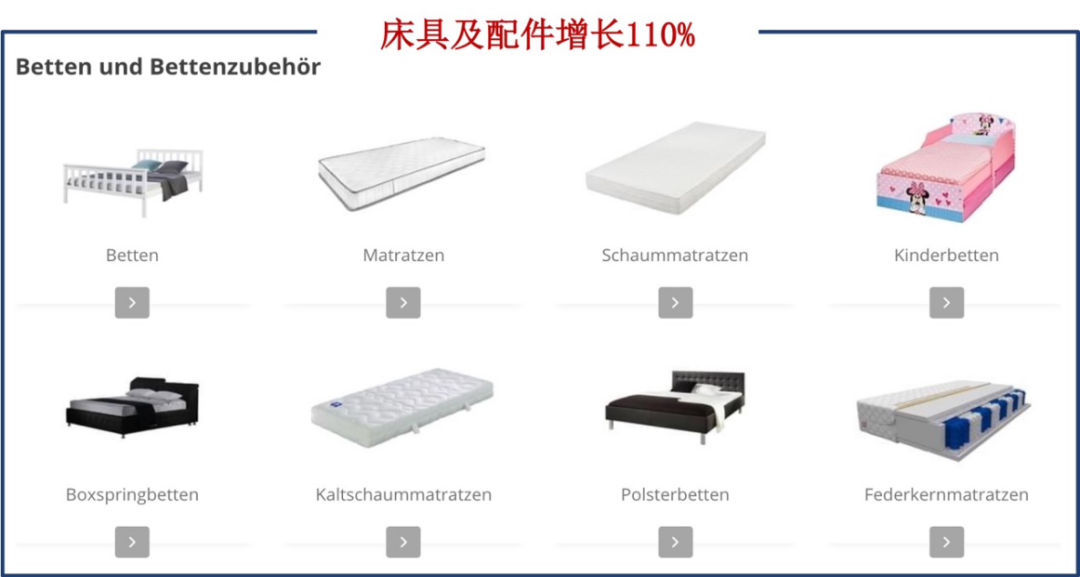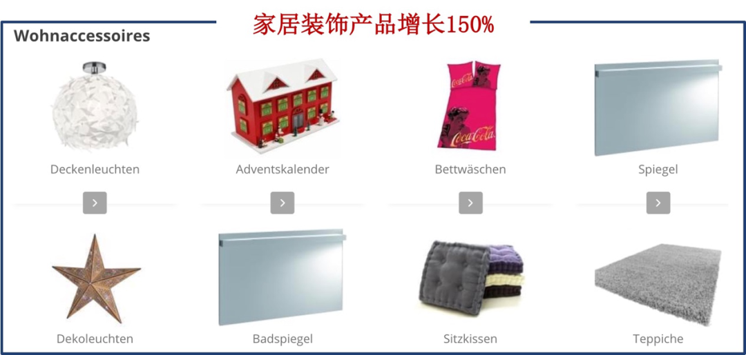 为了应对市场变化,德国政府已开始实施降税政策,德国普通增值税将从19%下降到16%,同时,适用于大部分食品和日常用品的低税率,也从原本的7%调整到5%,这一政策将持续到2020年12月31日,从而使卖家在价格上更有竞争力,吸引更多顾客购买。 今年6月,Real宣布更换了新投资人SchwarzGruppe,该集团是欧洲最大的零售集团,全球排名第四,旗下拥有德国著名的连锁超市Kaufland和Lidl。迄今为止,SchwarzGruppe拥有超过43万员工,在31个国家和地区,经营着超过12100间线下超市。和SchwarzGruppe携手,Real将进一步整合全球资源,加速国际化发展,全方位扩张平台,为卖家带来更多的顾客和销量。 近期火爆单品,销量持续上涨 近日,Real线上商场主要热销产品,包括电子产品、运动器材、厨房用品和生活家居产品,其中,今年7月,家居类的产品销量同比增长率达到了100%,桌椅、卧室用品、灯具等都是热销的明星单品。 细分家居用品的类型,同比去年7月,桌椅类产品的销售增长率达到80%;卧室家具类,特别是床、床垫及配件,销量增长了110%;家居的装饰品,例如适用于各个房间的灯具、镜子、置物架等,销售额更是增长了150%。