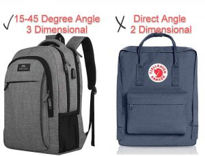 将产品倾斜15度左右摆放。这样可以展示出产品的三个面,比正面拍摄要好一些。