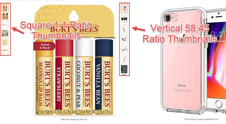 亚马逊上的大多数品类图片比例要求为正方形1:1,但有些品类的垂直比例为58:45,如下图所示: