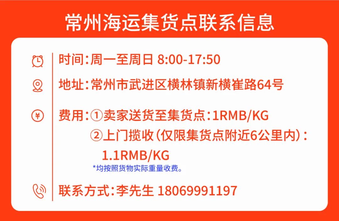 Shopee在江苏省常州市武进区设立新加坡、马来西亚海运包裹集货点,为卖家提供从集货点送货至合作伙伴汇翔义乌仓的服务。包裹到达集货点后,即显示入仓状态。卖家可选择自行送货,或联系承运商上门揽收,揽收服务费和集货服务费由卖家与汇翔线下结算。