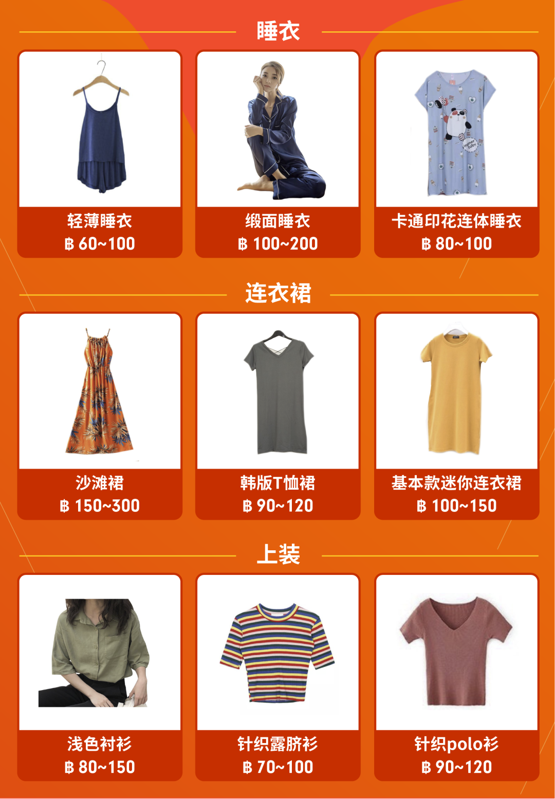 女性服饰推荐子类目:睡衣、连衣裙、上装