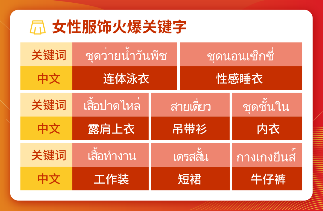 近来泰国站点女性服饰热搜上,风格与选色明显低调了许多,“呛声”的嘻哈风热度减缓,反倒是一些更为实际的服饰有了不错的关注度。雨季与疫情使得出门的机会减少,消费者对于穿着的舒适度更为看重,这体现在一些关键字搜索量与前段时间有显著差异。