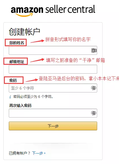 以注册美国站点为例。自注册登陆亚马逊官方网站gs.amazon.cn注册;
