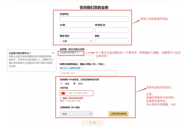 9、在注册期间可以联系到您的电话号码。(便于亚马逊招商经理与您取得联系,并指导您完成注册和开店。)
