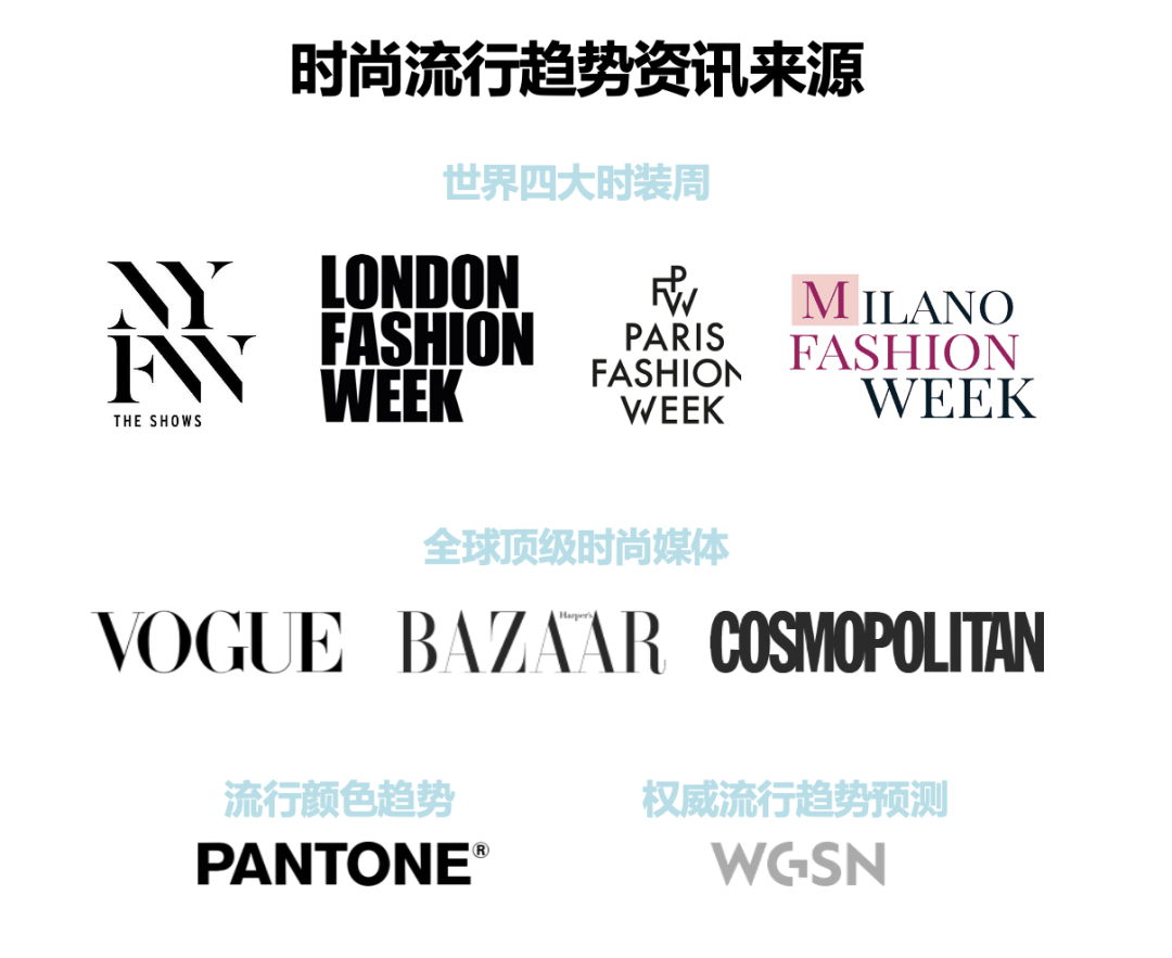 卖家们平时还可以多多关注世界四大时装周、全球顶级时尚媒体和其他趋势预测资源,来让自己的产品更契合未来趋势。将这些流行元素融入到自己的产品设计中,同时结合自己的品牌定位和目标消费群体定位,不断试款和迭代,相信一定会事半功倍[3]。