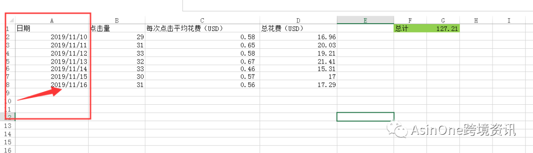 具体需要那几天的广告数据就拉那几天的日期,他会自动汇总,其它地方不要动,会破坏公式