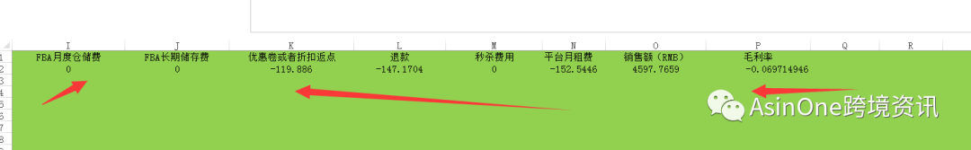各项数据都会自动转换成下面的明细 属于什么类型的数据也会标示出来 比如说优惠券折扣返点等