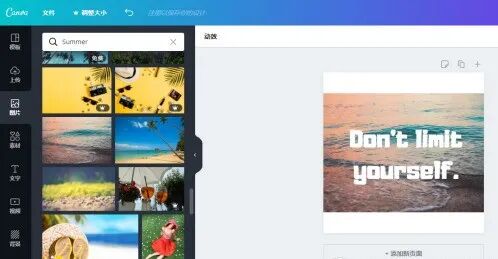 打开Canva,这个免费的制图网站,选择一个背景图,加上公司的Logo,将励志标语编辑成一个广告海报。