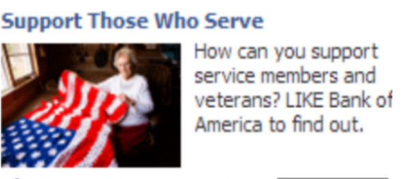 比如,美国银行(Bank of America)就曾经以“关爱老兵”的旗号发布过信息,当用户点入后,经过填写调查信息与问卷后,才会发现并没有与该主题相关的相应服务,但银行通过这样的方式得到了用户信息,比如用户住房抵押贷款情况等。