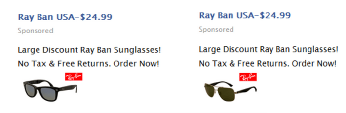比如,Facebook平台出现了两条关于眼镜厂商Luxottica的广告(如图1),但用户点击广告后,其所在的跳转页面显示的产品却为其他品牌。据外媒Mashable猜测,这很可能是来自中国大陆的公司所为。