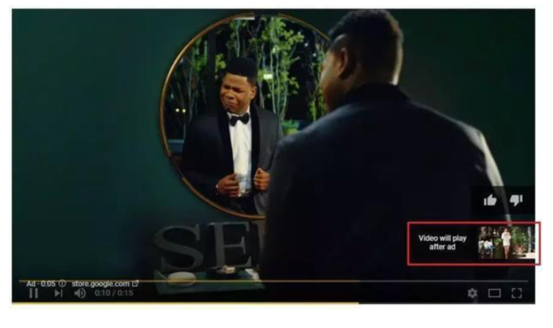 此类YouTube视频广告会在主片视频播放前、期间或之后显示,长度为15。这类视频广告展示收费,但是如果广告未播放,观看者就已耐心不足切换到其他视频了,那么本次广告观看就不会向企业主收费。