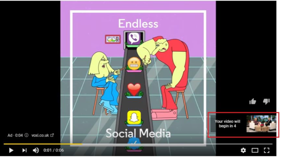 在 YouTube 视频之前或期间会出现 6 秒不能跳过的导视广告。当人们经常边走边在手机上看视频时,这种 快节奏格式尤为有效。