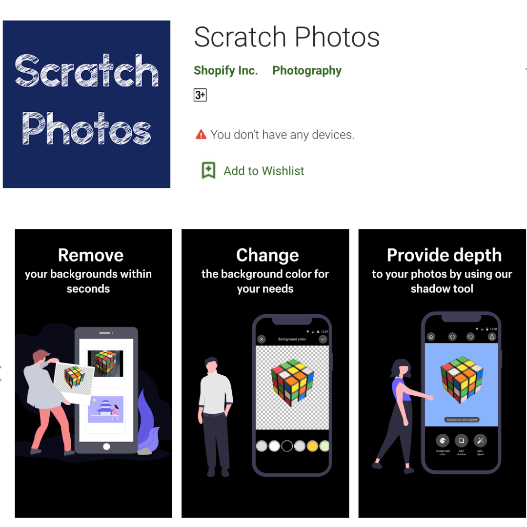 Scratch Photos是 Shopify 开发的应用程序,旨在帮助社交电子商务创业者快速编辑图像。不仅可以删除背景,还可以将其替换为更理想的背景来创建精美的产品图片。自动背景去除器由先进的AI技术驱动,可以有效扫描和去除照片中的背景,还可以通过自动调整功能来改善昏暗的图像。