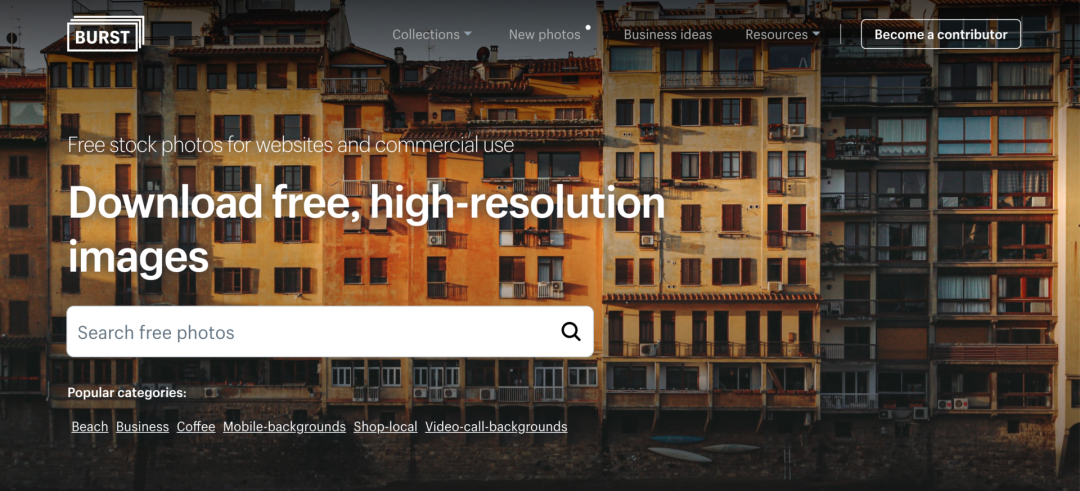 Burst是由 Shopify 官方团队建立的图片库网站,该网站内的所有图片都经由 Shopify 团队拍摄,在这里你可以找到海量的不同类型的图片来用于你的 Shopify 商店的广告营销或页面设计,最重要的是,全部图片均可免费商用!