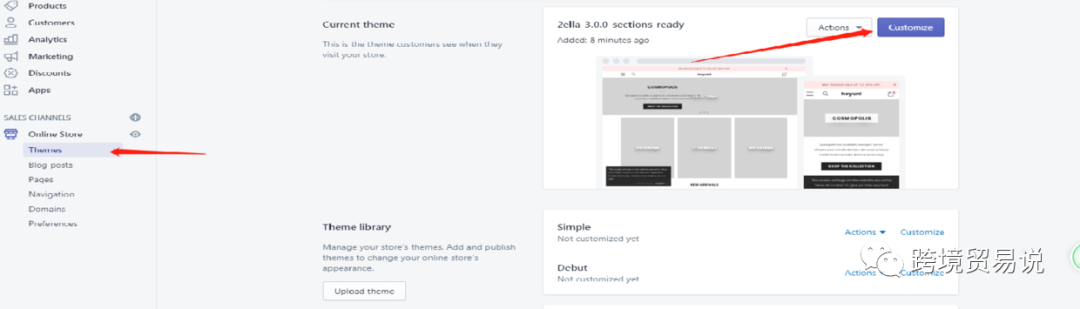 (b)点击Themes(主题)点击Customize(定制)进入主题设置