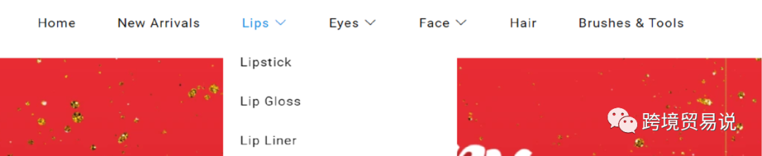 例如彩妆站的类目:HOME-新品上市-嘴唇-眼睛-基础-头发-刷子和工具属于一级类目