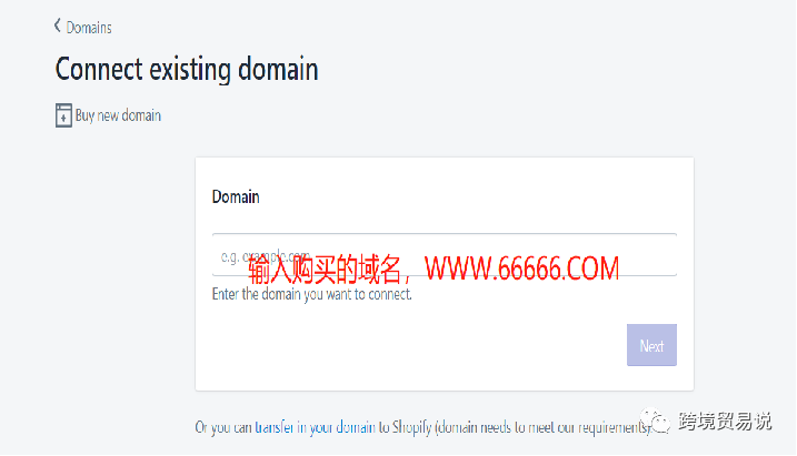 点击网上商城,点击域,点击连接现有域,输入购买的域名www.域名.com下一步,点击验证后,返回,等待验证