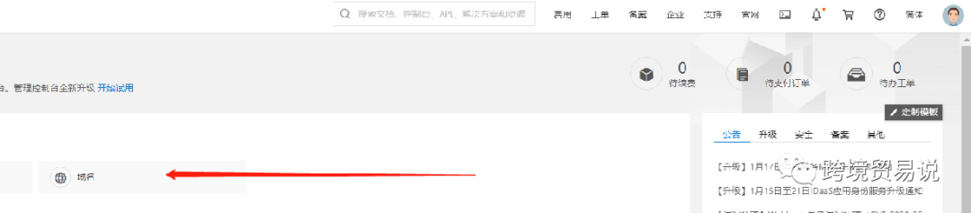 3、购买完成后,返回控制台,点击域名,进行域名解析