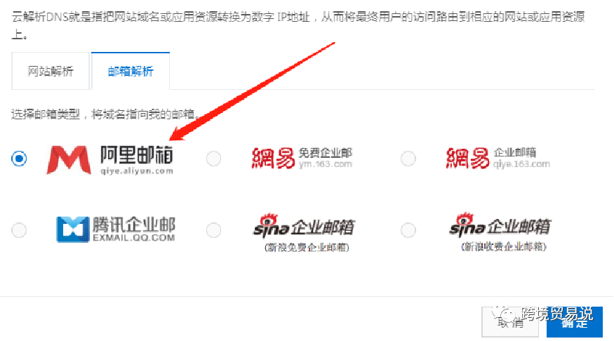 邮箱购买完成后,回到控制台,找到企业邮箱,设置解析