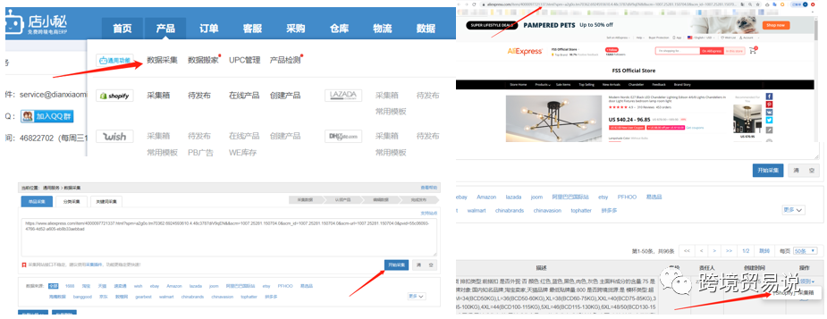 (1)采集商品链接,复制1688,淘宝,速卖通的商品链接,开始采集,然后进行认领。
