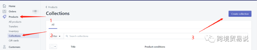 打开后台,点击Products(制品)选择Collections(馆藏)创建新的类目
