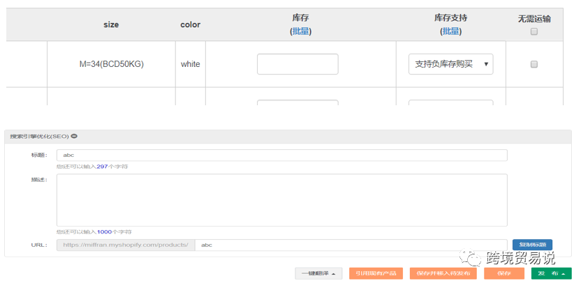 库存批量添加,搜索引擎优化,标题和上面的标题一致,描述可以不用填,链接也可以填写标题,不可出现中文,然后检查一遍,可以立即发布。