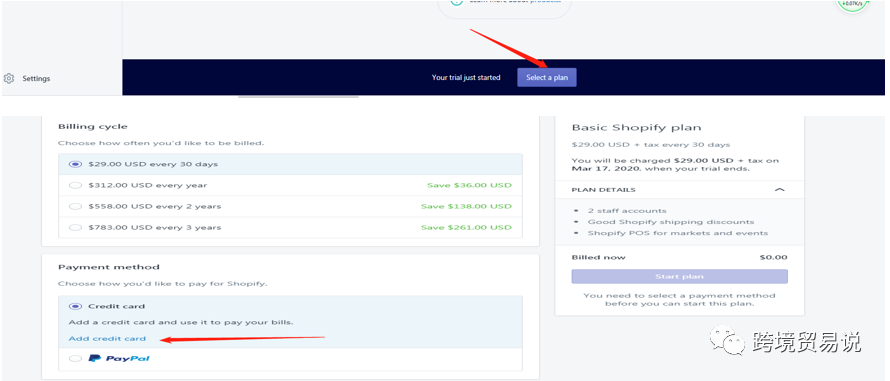 3、产品上传完成后,开启shopify后台月租费用,把密码保护关掉,才能看到自己的商品,在后台的下方开启,月租分,29,营业额的百分之2,79,营业额的百分之1 299,营业额的百分之0.5,添加双币信用卡支付月租。