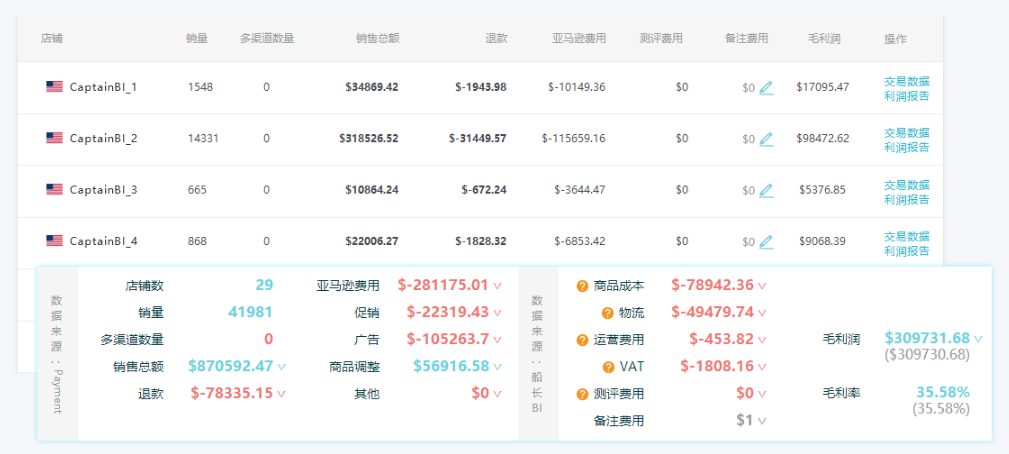 图源/卖家社区 该卖家表示,自己出来单干,店铺成绩有起色,但在财务问题上就是一小白,永远不知道自己赚了多少钱,感觉自己手上也没钱,货倒是有一堆。 其实,在跨境行业中这个现象很普遍。每隔一段时间,您可能就会听到身边的一些卖家抱怨:“亚马逊越来越难做了,平时出单量看着还不错,可卡里的钱却没见多!” 很多东西只是表象,实际上并没有想象中的那么简单!利润核算、财务管理和分析也是一样的道理。做亚马逊不能只谈订单量、销售总额,利润、成本以及日益增长的资金流动影响等财务自由问题,也是卖家需要考量的。 包括,但不限于: 您需要知道做亚马逊的钱都花到了哪里 您的利润是否真的算准了 利润核算不准确,滞后或可能带来的影响或风险 怎样去改善,高效精准核算利润 关于利润计算,可能还有部分人停留在利润=收入-支出这一简单的公式上,咋一看好像是没什么问题,但实际上,收入和支出部分涉及到的费用明细就非常多了。 例如,收入部分除了销售利润之外,可能还有赔偿收入(库存丢失/残损索赔)等;支出部分的费用项目更多,像采购成本、商品成本、平台销售佣金、物流配送费用、仓储费用、广告费用、促销提报费用、VAT增值税等等(只罗列了部分参考),这些都是花钱的地方,也就是我们常说的运营成本。 在利润计算、财务管理和分析上 卖家或可能遇到的困难有哪些? 对于单店铺卖家而言,可能还好说,后台下载财务报表,里面有商品的回款以及各项花费详情,数据透视一下可以看的很直接。再减去刷单、进货等成本,可以大致的算一下投入和产出,但并不是很精准。 大多数卖家最常看的表就是payment,操作路径:付款-日期范围报告-生成报告,选择你要下载的日期。 但对于多店铺卖家来说,计算起来就非常麻烦了。亚马逊后台涉及到的数据报表非常多,需逐一导出,再通过人工核算,周期变长效率低,且数据不够完整,易会出现漏算或错算等情况。 如果商品利润核算不精准,未能及时止损,资金流动遇到困境,或将影响整体的业务布局。 卖家该如何算清楚做亚马逊 的这笔账,以获知盈亏点? 常言道,数据是财务的根。准确性、全面性是数据的必备要素。可以使用船长BI「财务/VAT」工具,3大模块(包括店铺财务状况、退款管理、VAT智算专家),9大功能(包括店铺利润报告、ASIN费用解析、交易数据、运营费用明细、利润月报、回款记录、退款分析和明细、VAT智能计税、运营费用和财务相关自定义设置)帮助您立体化多维度分析多店利润与销售数据,告别低效人工核算,让财务工作与团队考核更加简单透明。 「店铺财务状况」 多维度自动分析汇总,一键生成利润 综合展现店铺利润、ASIN费用、交易数据、运营费用、利润月报、回款记录等数据。全自动计算所有店铺的总利润,收入和支出明细让你心中有数,支持生成/下载各项数据报表! ▼店铺利润报告:汇集促销、广告、仓储和佣金等高达100多项成本数据,一键生成利润。 ▼ASIN费用解析(付款):全面展示FBA费用、促销费用、CPC、TAX、头程/物流/采购成本等。 ▼利润月报:提供所有店铺每个月的利润情况,每月定时生成月报,主要用于每月利润核算,便于数据统计。 ▼回款记录:主要用于财务转入对账,回款记录帮助您核对相应的银行卡入账信息,做好财务入账登记。 「退款管理」 全面分析商品退货原因,退款数据一目了然 对于亚马逊卖家来说,退货是难以避免的一种情况,其成本也必须核算清楚。例如退货后不可再次销售可能会产生仓储费或弃置费。船长BI「退款管理」提供详细的退款数据统计和图表分析,以及退货原因分布及改进建议,其中,退款商品统计支持批量导出数据。 ▼退款分析:统计退货率、退款金额和退款产生的额外成本,可查看退款订单地域分布,自动分类退款原因,并提出智能优化建议,降低退货率。 ▼退款明细:统计了退款商品订单明细,支持批量导出数据。可按条件进行分类筛选,也可输入订单号进行单商品筛选。 「VAT智算专家」 支持手动/自动算税,税务核算更精准 主要用于帮助欧洲站卖家计算VAT税额,根据设置,手动或自动算税,即可快速得出完整准确的应缴税额。 ▼VAT报告:可通过系统自动获取销售报告计算生成税单,也可手动上传销售报告和设置税务参数计算税单。 ▼报税国家设置:严格区分两大申报原则,目的国原则和发货国原则,专业计算逻辑(按当地税务规定算法进行计算)。 ▼VAT手动计算:支持手动添加抵扣项,计算结果更精准可靠。 「自定义设置」 费用灵活添加,数据更完整,利润计算更精准 主要用于添加日常运营产生的费用,如商品测评、站外引流等。在添加运营费用中设置规则和金额等,系统会将运营费用自动统计在商品费用明细中,使利润报告中统计出的数据更加完整。 商品产生销售时,船长会根据卖家设置的成本将相应商品成本扣除,相反,在退货时,理论上需要将产品成本补回。卖家可根据实际情况进行设置,商品 产生退货时, 是否将商品成本与物流作为收入加回到利润计算中。 以上就是今天船长和各位卖家分享的有关利润核算、财务管理和分析方面的内容,希望对大家有所帮助。