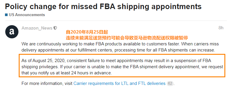 错过亚马逊物流配送预约的政策变更