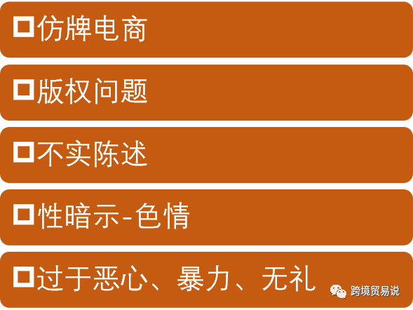 1、仿牌电商:不允许推广仿牌产品,假冒产品。