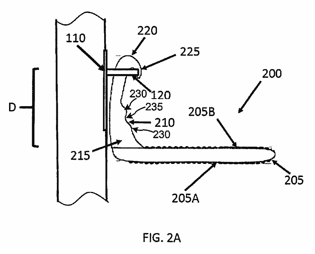 该专利描述了可移除地联接至车辆的门闩元件(例如,U形撞针元件)的踏板装置。踏板装置可包括钩元件,该钩元件使踏板装置能够从车门井中的门闩元件悬挂。踏板装置还可以能够延伸穿过门闩元件,使得踏板装置可以在竖直位置上联接至门闩元件。一种踏板装置可包括一个或多个踏板结构。