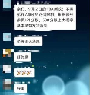 图片显示:9月2日的FBA新政:不再执行ASIN的仓库限制,根据账号参照IPI分数,500分以上大概率基本没有发货限制。