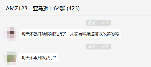 9月1日下午,卖方通卖家交流群一位卖家直接在群里询问:明天不就开始限制发货了,大家有啥渠道可以改善的吗?