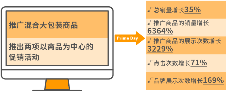 *与之前的 14 天相比,Prime Day期间及之后的 14 天中五大品类的展示次数增长数据 如何把握时机把购物狂欢中让消费者看到你的商品? 去年哪些关键词最火热C位出道? 我们为你整理了四大品类的Prime Day搜索趋势数据,还有优秀卖家成功案例。精华都在这里,今年Prime Day尽管“看着办”! *以下增长数据均为Prime Day期间与前一周数据的相比值 *以下内容数据为【卖家个人数据】,仅供参考 品类一:CPG 搜索趋势数据 热门关键词 √ Scrunchies √ air fryer √ toilet paper √ instant pot √ paper towels 除了关键词投放,CPG品类下的不同品牌卖家在Prime Day期间运用了不同的广告策略,实现了销量和流量的大幅提升,他们是怎么做到的? 某宠物用品品牌 目标:提高消费者购买意向和销量 某杂货品牌 目标:出两个新的、仅面向电子商务的商品系列 营养健康品牌 目标:Prime Day期间提高销量并吸引新的消费者 品类二:CE 搜索趋势数据 热门关键词 √ Wireless earbuds √ Bluetooth headphones √ headphones √ Bluetooth earbuds √ earbuds √ wireless headphones 某无线电话品牌 服饰家居用品和家电玩具等品类,在消费者的日常搜索中也占很大比例。他们搜索趋势优势怎么样呢?在去年的Prime Day哪些关键词更受青睐?今天给大家开小灶透露啦! 品类三:Hardline 搜索趋势数据 热门关键词 √ Shower curtain √ tapestry √ desk √ gaming chair √ tapestry √ shoe rack √ portable air conditioner 品类四:Softline 搜索趋势数据 热门关键词 √ Lingerie for women √ womens tops √ summer dresses for women √ swimsuits for women √ one piece swimsuits for women √ maxi dresses for women √ dresses for women casual summer √ bathing suits for women