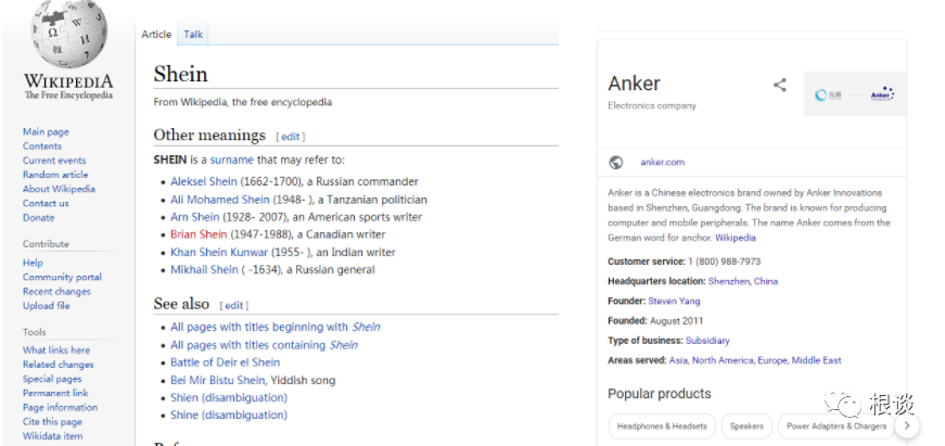 作为中国品牌出海的时尚类目领头羊,在Google搜“SHEIN”词条跟SHEIN没多大关系,说明SHEIN暂时没有做WIKI词条,对比Anker,SHEIN品牌化还有很长的路要走。