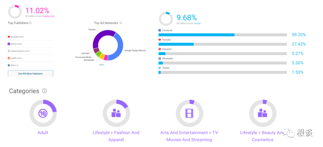 引荐流量占比7% (主要是渠道引荐,通过外链来源来看里面存在大量垃圾流量,其中有条外链流量占比3%(注意是占整个网站),再结合流量的分类来看,有大部分是成人网站流量来源)可能是联盟渠道引荐进来的,当然也不排除是官方刻意做的,来提升网站的排名,不过对于品牌也有一定的负面影响)