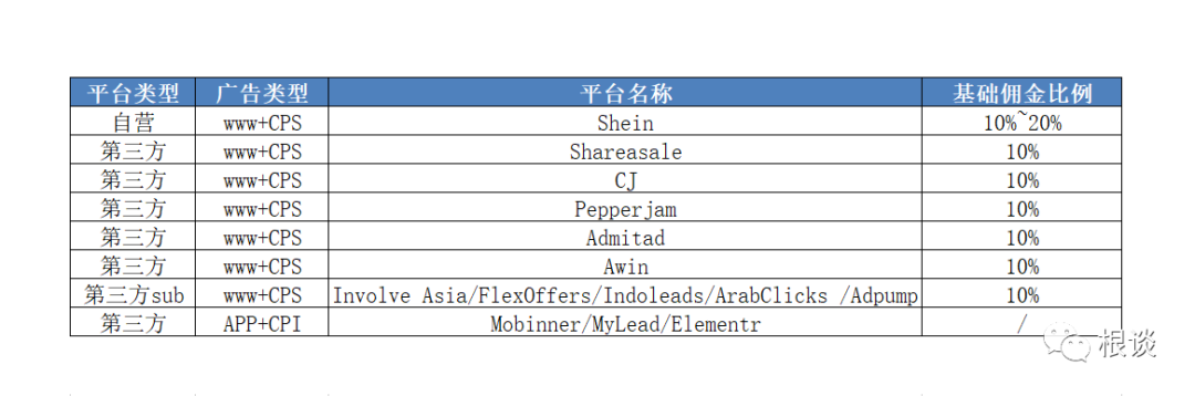 除了常规的CPS针对网页端的渠道,随着移动端的占比提升,SHEIN同时也会把一部分APP推广的需求外放给一些第三方网盟平台,以CPI的方式推广安装来获得比较低价格的安装