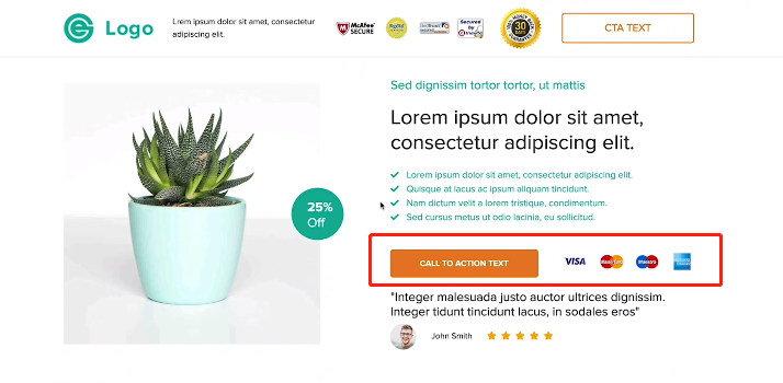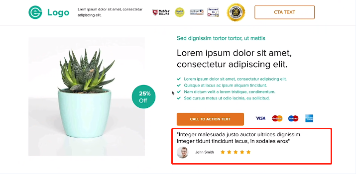 将评论板块安置在“call to action”下方,可帮助网站迅速积累消费者的信任。