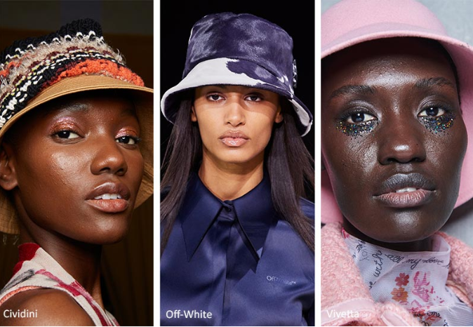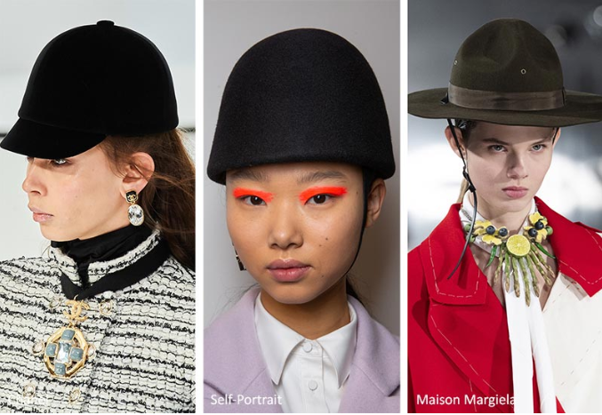 在香奈儿(Chanel),这意味着模特们戴的帽子看起来像骑马头盔,带有圆形实心冠和连续的黑色遮阳板。Self-Portrait的帽子具有略微类似的圆形实心设计。