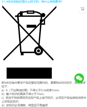 8. 客户需要将提交注册的品牌、WEEE回收标识印在产品本身和包装上,回收标识要求如下: