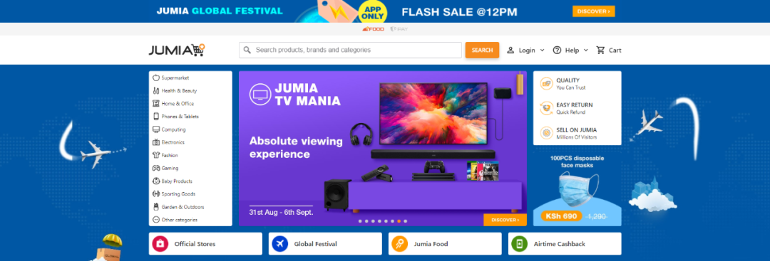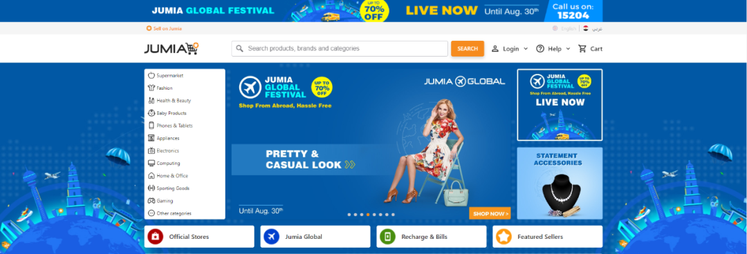 熟悉Jumia业务生态的卖家朋友,Jumia Global的专属颜色是蓝色,代表了来自全球的优质产品,尤其以中国卖家的产品最为活跃,伴随着Jumia Global Festival活动的全面上线,Jumia用户来到购买页面,就会沉浸在蓝色风暴中。这段时间买家的首选也是来自国际卖家的产品。