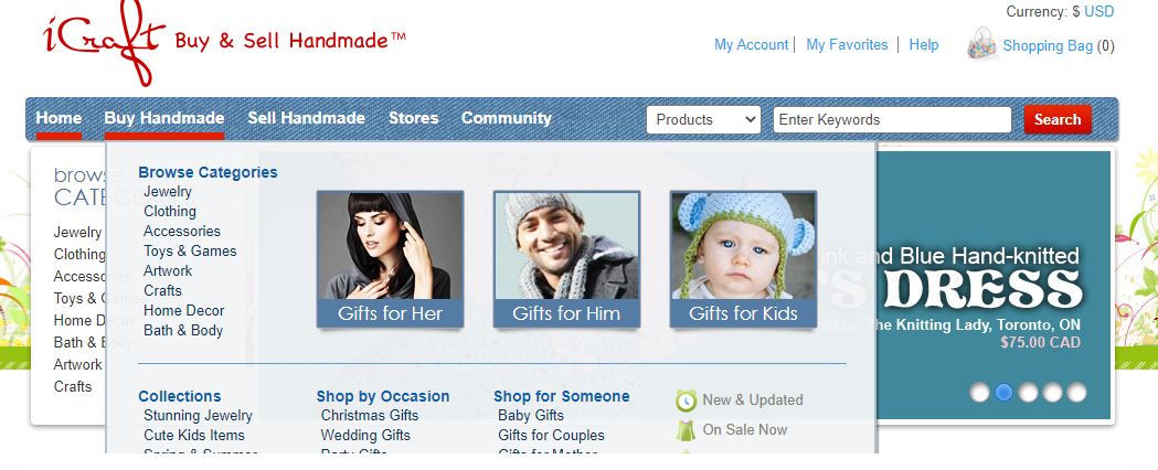 icraftgifts是加拿大的手工艺品平台,但是平台不允许出售古董、手工艺品材料。该平台收取25美元的注册费用,还有套餐加护供卖家选择,价格从每月10美元到15美元不等,不收取刊登费、佣金、交易费。