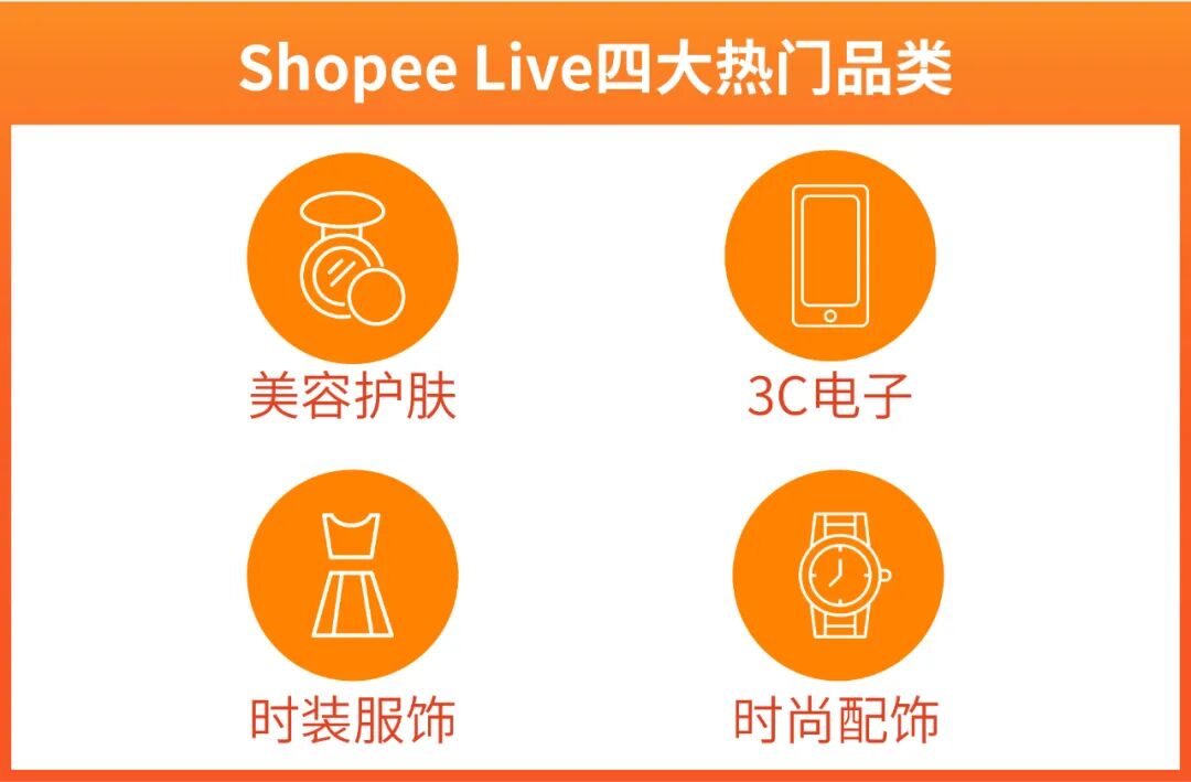 Shopee Live海量流量让商品在极短时间内实现高曝光和快出单。同时,众多世界级知名国货品牌与Shopee结盟,如华为、OPPO、vivo、小米、格力。Shopee Live作为新型高效的带货方式,成为诸多品牌引流、出单的理想之选。美容护肤、3C电子、时装服饰、时尚配饰已成为四大直播热门品类,其中相当多的产品通过Shopee Live,实现从0单到万单,亦或是从“日出千单”到“时出千单”的质变。