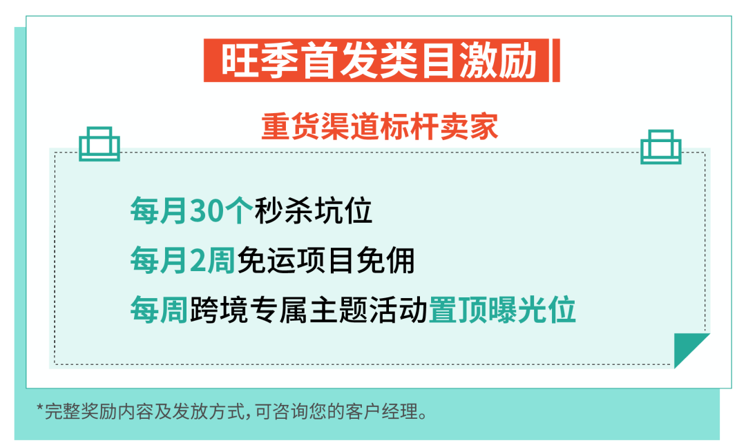 泰国站点的卖家还可通过加入泰国跨境旺季物流折扣激励计划*,即有机会享受到运费藏价高达50%的减免激励,包裹超过10g的部分运费均可减半!四大市场联手发力,让卖家旺季利润翻番!